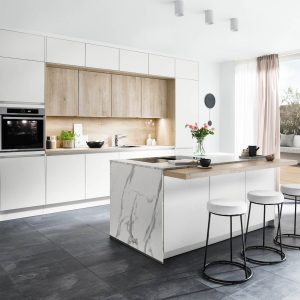 Die Wahl der richtigen Materialien verleiht Ihrer Küche nicht nur einen unverwechselbaren Charakter, sondern entscheidet auch über Langlebigkeit und Alltagstauglichkeit. Eine Holzarbeitsplatte schafft Wärme und Natürlichkeit, während Keramik oder Naturstein durch ihre Robustheit überzeugen. Bei den Fronten reicht die Auswahl von matt lackierten Oberflächen über Echtholzdekore bis hin zu modernem Smartglas. Im Spülbereich stehen Ihnen Edelstahl, Granit-Komposit oder klassische Keramik zur Verfügung. Bei Möbel König führen wir eine Auswahl hochwertiger Marken, damit Sie Ihre Traumküche in jeder Hinsicht nach Ihren Vorstellungen gestalten können.